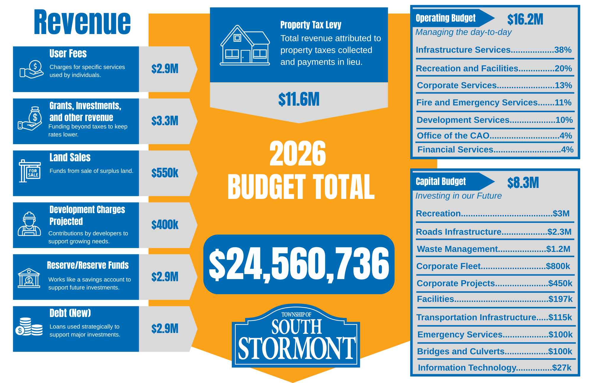 The infographic below will provide a snapshot of the operating and capital expenditures, as well as the budgeted revenues for 2026.